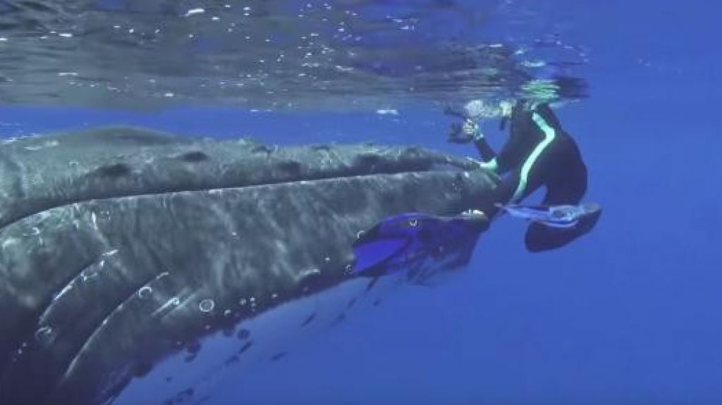 El cetáceo empujó a la buceadora con su cabeza hasta que fue elevada a la superficie del mar, e incluso llegó a protegerla con una de sus aletas dorsales mientras otra ballena lanzaba coletazos contra el agua con el fin de que el tiburón no se acercara.